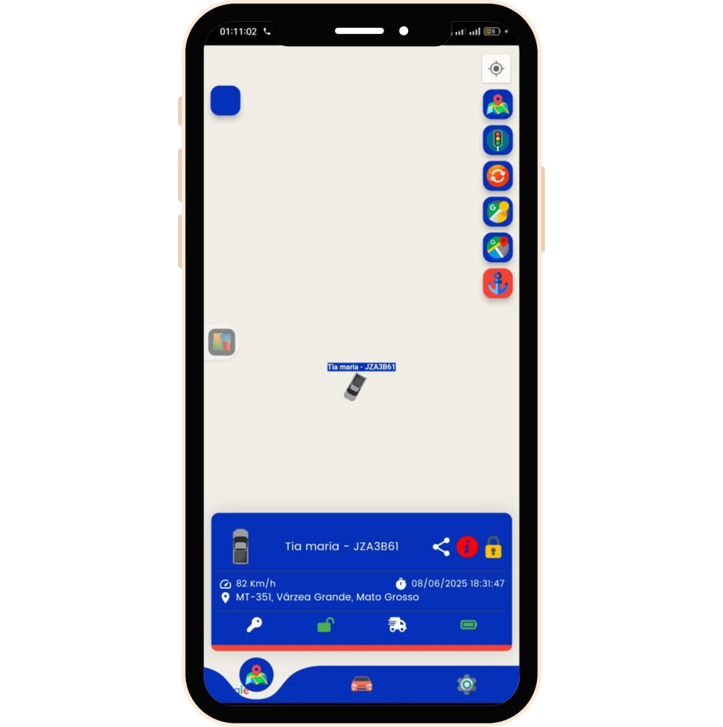 Instalamos um dispositivo GPS no seu veículo que transmite dados para nosso sistema. Você acessa via app ou web e vê tudo em tempo real.